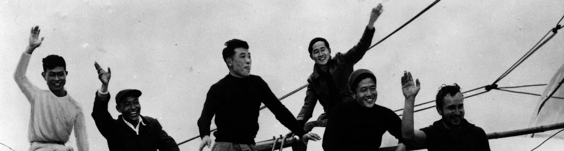 The ‘Free China’ junk (which carried Dione’s father Reno Chen & five mates from Taiwan to San Francisco in 1955) is the oldest known surviving Chinese wooden sailing vessel of its kind. The dream of the six junk-mates in their late twenties (including Paul Chow, Loo-Chi Hu/Huloo, Marco Chung, Benny Hsu and Calvin Mehlert) — to sail across the Pacific in 1955 with no prior sailing experience — is rivaled by the dream of the next generation to bring the fragile boat ‘home’ nearly sixty years later.